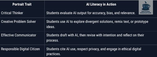 This framing helps teachers see that AI isn’t just “new tech”—it’s directly tied to our long-term goals for student learning.